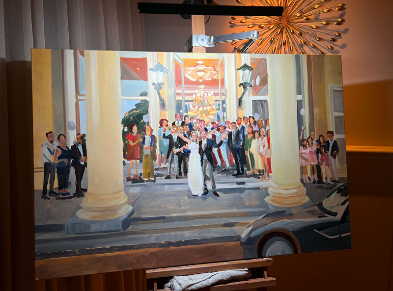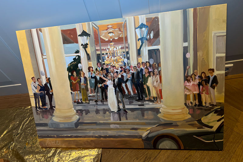 Livepaint voor bruidspaar dat anoniem wil blijven. Wel kreeg ik teostemming om de fotos van het proces en het eindresultaat te tonen. Boekster mevrouw N.B : ”Hi Marieke! Het bruidspaar is echt zo enorm enthousiast over jouw schilderij. Ze vinden het GEWELDIG en waren volledig overdonderd met dit cadeau 🎨👩🎨 Het is ook echt prachtig geworden!! Een waar kunststuk!! Bij het ontbijt de volgende dag bleven alle gasten maar naar het schilderij kijken….